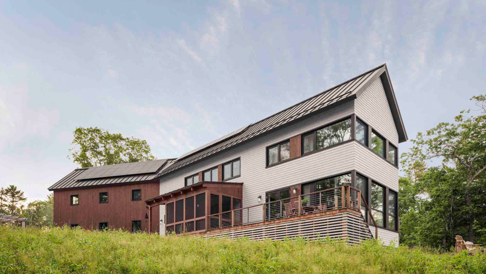 This beautiful high-performance custom home was a wonderful collaboration between the clients, Briburn Architects and Benjamin + Co. The husband grew up on this property and returned to Maine to retire. A geothermal heat pump provides heating, cooling and domestic hot water, and the solar panels provide all the electricity making this home truly Net Zero.